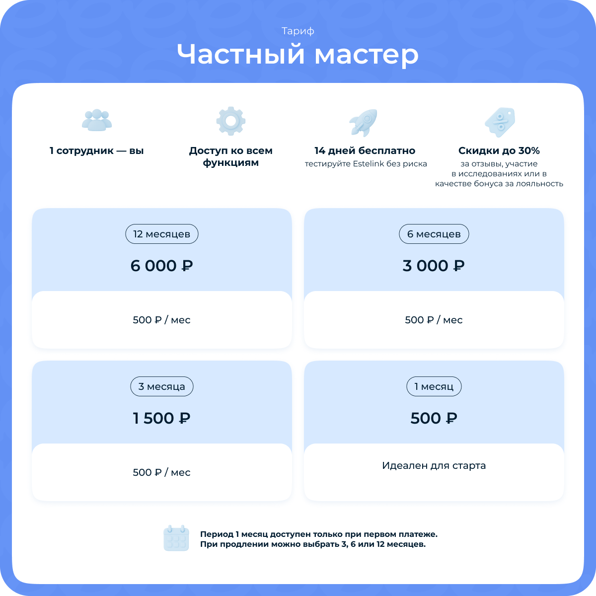 - Если ваш салон зарегистрирован в Estelink после 13 января: сохраним дополнительные 14 дней бесплатного доступа — с 20 января по 3 февраля включительно.